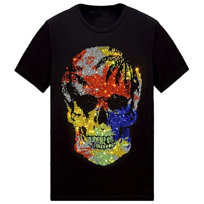 OS-:เสื้อยืด rhinstone ผู้ชาย