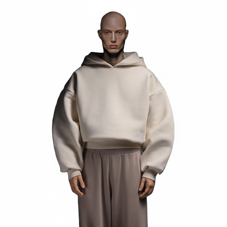 เสื้อฮู้ดสีเบจสำหรับทุกเพศไซส์ใหญ่พิเศษแบบถักสำหรับฤดูหนาวลายสีทึบ