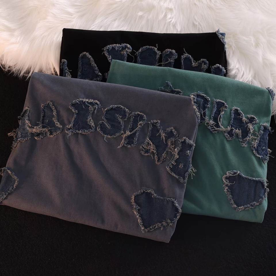 เสื้อยืดถักทรงโอเวอร์ไซส์แบบยูนิเซ็กซ์ สไตล์วินเทจ ล้างสีแบบแอซิด ปักลาย 3 มิติ ขายส่ง ผ้าฝ้าย 100% 240gsm เนื้อหนา ระบายอากาศได้ดี สีพื้น