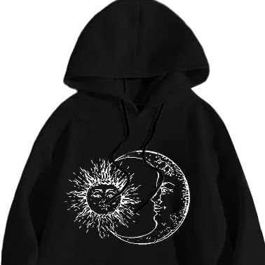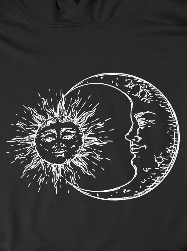 เสื้อสวมหัวแขนยาวโอเวอร์ไซส์ใส่ได้ทั้งชายและหญิงเสื้อมีฮู้ดกราฟิกดวงอาทิตย์ดวงจันทร์กระเป๋าฤดูหนาวผ้าฝ้ายโพลีเอสเตอร์ปักที่นูรัค
