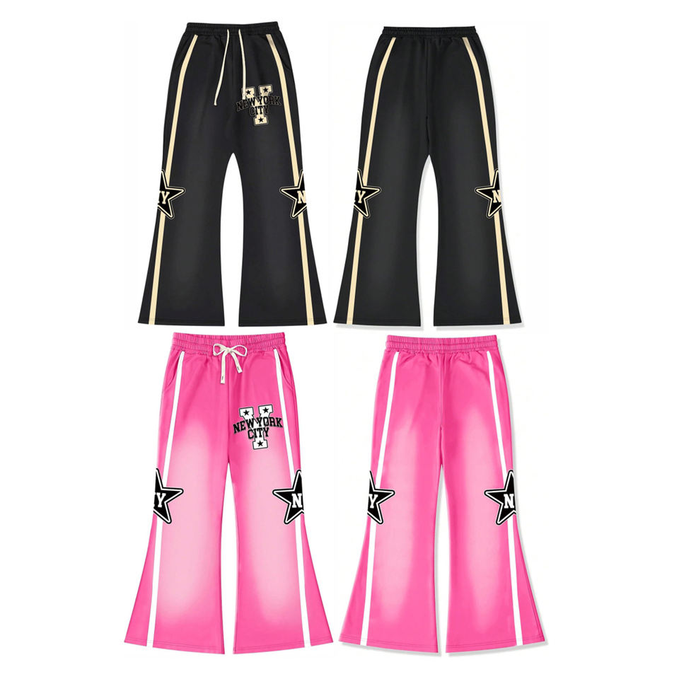 กางเกงสตรีทโอเวอร์ไซส์สำหรับผู้หญิงใส่ได้ทั้งชายและหญิงกางเกงสไตล์วินเทจฟอกสีชมพูไล่ระดับแฟชั่นแนวสตรีท
