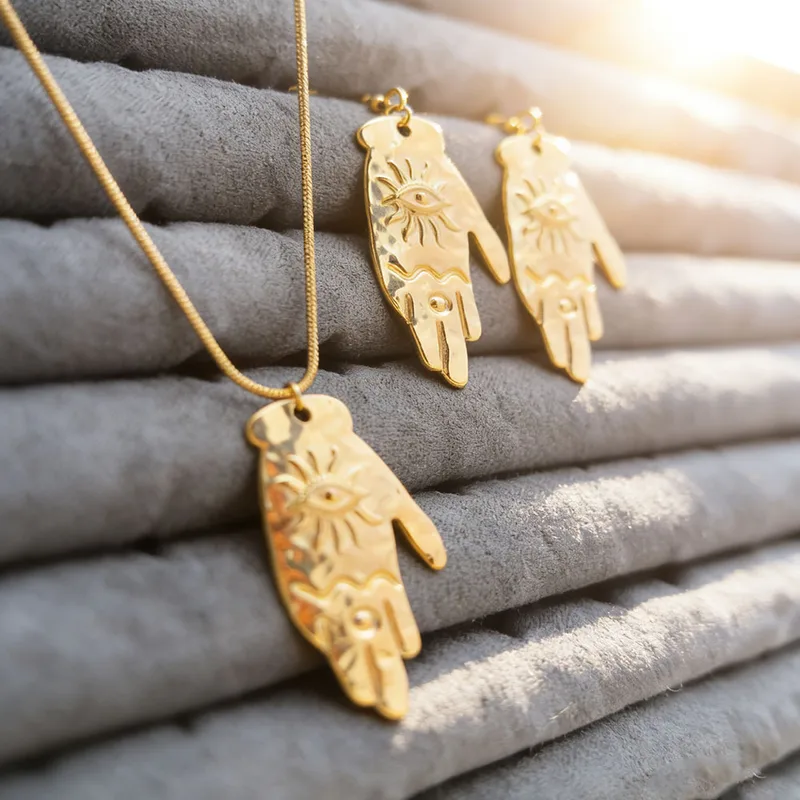 สร้อยคอลายปาล์มแบบยูนิเซ็กซ์พร้อมโลหะชุบทองแท้ 18K และโซ่ลายงู 1 ชุดเครื่องประดับ