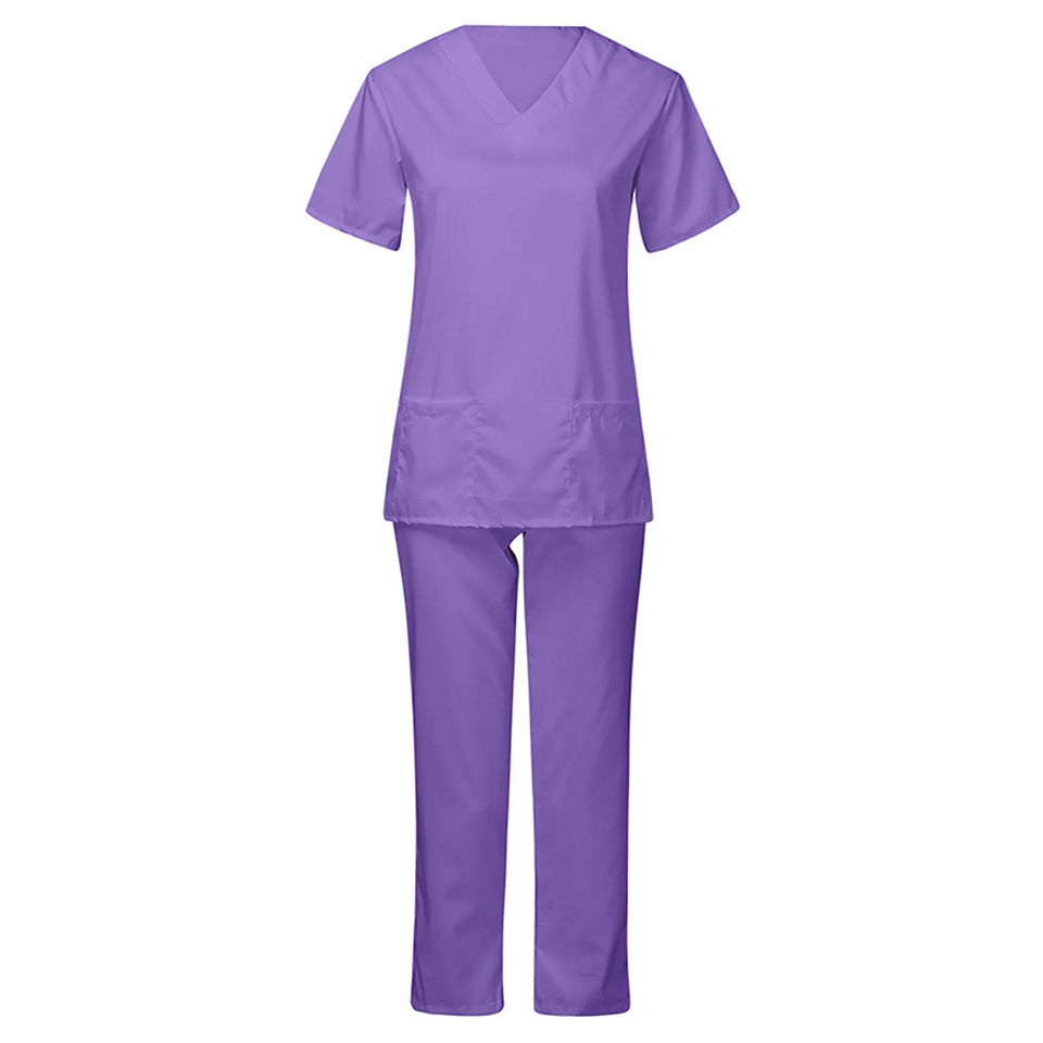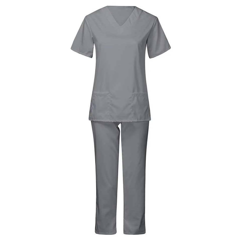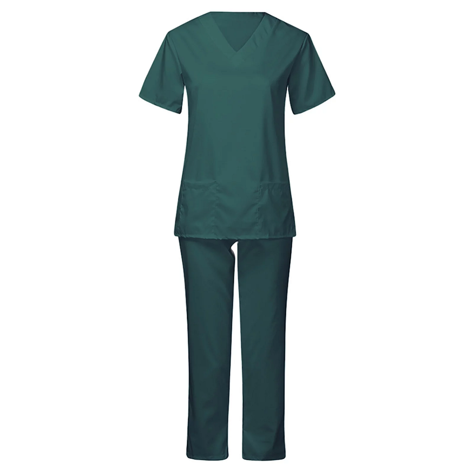 ชุดยูนิเซ็กซ์สำหรับบุคลากรทางการแพทย์ ไซส์พลัส สำหรับใช้ในโรงพยาบาล ผลิตจากผ้าฝ้ายผสมโพลีเอสเตอร์ ทออย่างดี มีกระเป๋า ชุดเสื้อและกางเกง