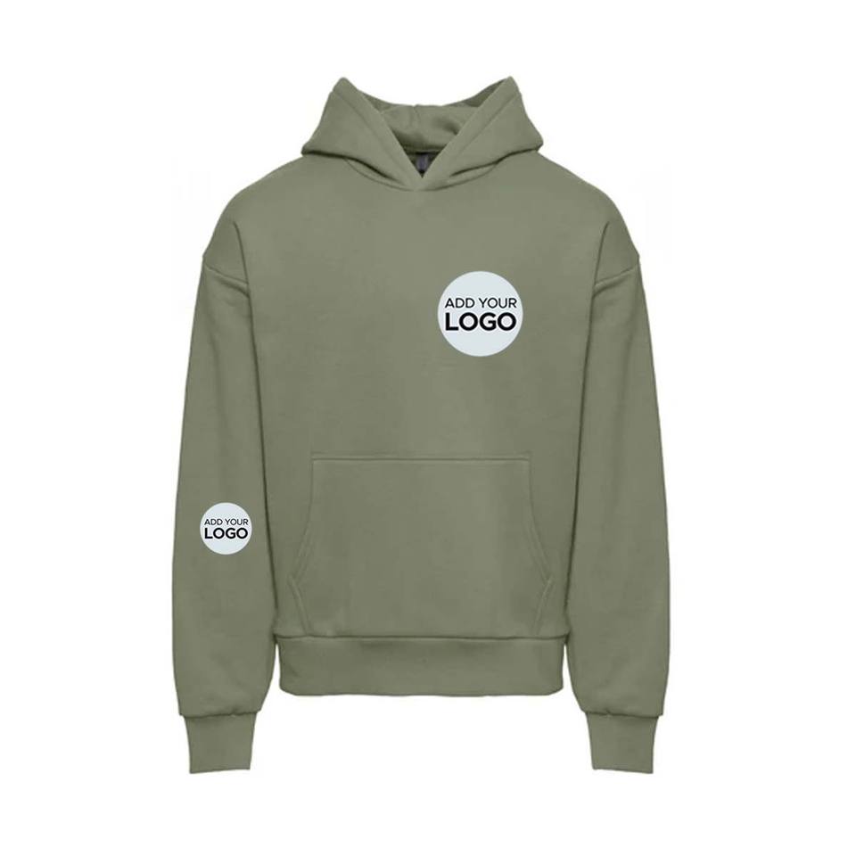 เสื้อฮู้ดผ้าฟลีซผสมโพลีคอตตอนแบบยูนิเซ็กซ์ สกรีนโลโก้ปักแบบกำหนดเองสำหรับผู้ชาย