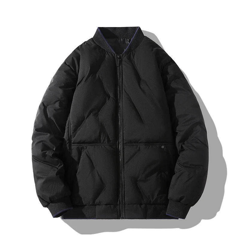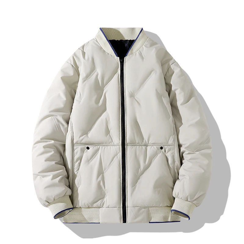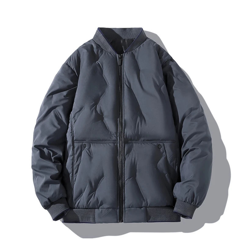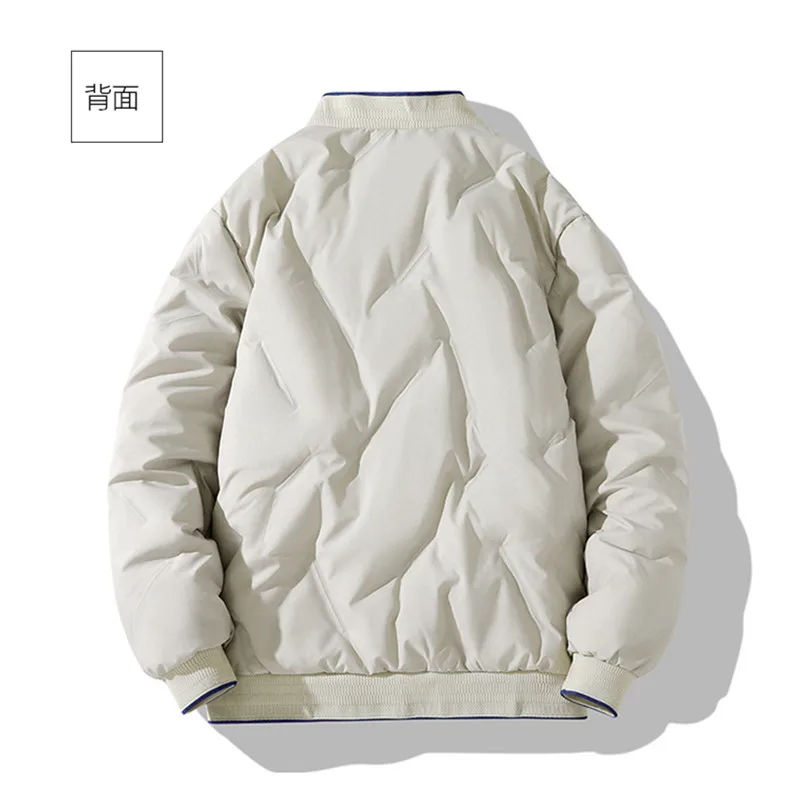 แจ็กเก็ตเบสบอลฤดูหนาวโพลียูนิเซ็กส์เสื้อโค้ทแบบลำลองมีซิปรูดรูดติดโลโก้ได้ตามต้องการเสื้อนอกอบอุ่นไม่มีปก