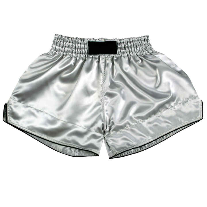 กางเกงขาสั้นฝึกซ้อม MMA ผ้าซาตินโพลีเอสเตอร์แบบยูนิเซ็กซ์ สำหรับมวยไทย บราซิลเลียนยิวยิตสู บริการสกรีนโลโก้ตามสั่ง รับผลิตแบบ OEM