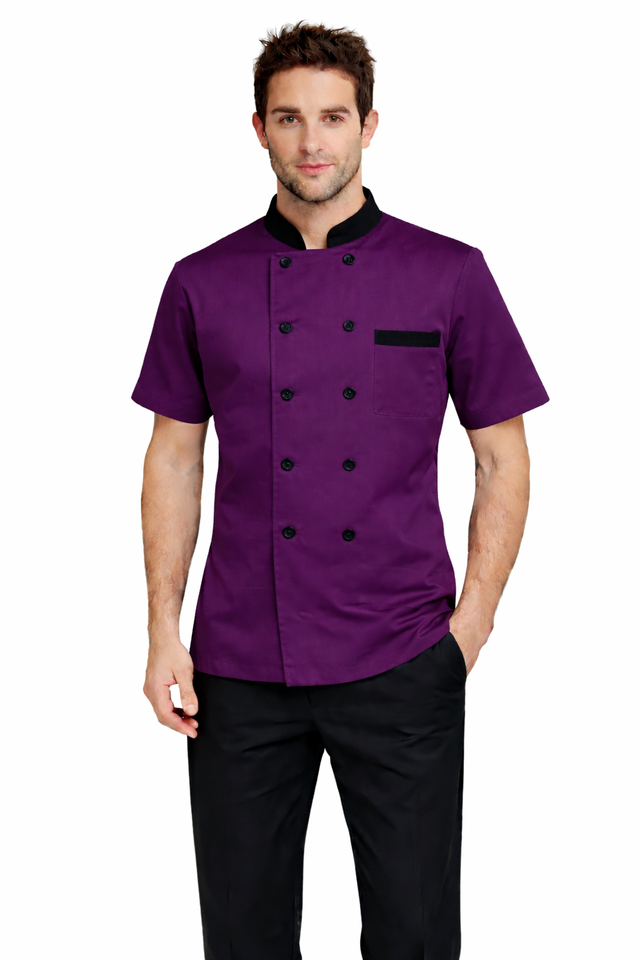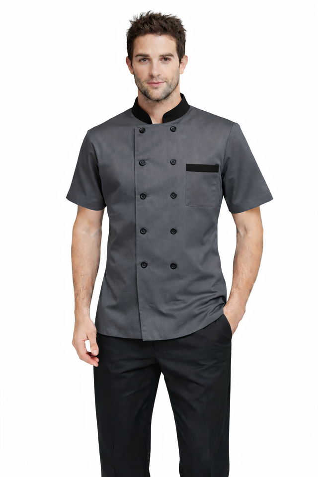 เสื้อเชฟพรีเมียมแบบยูนิเซ็กซ์ แขนสั้น ผ้าโพลีเอสเตอร์/คอตตอน รับสกรีนโลโก้ สำหรับครัว ร้านอาหาร โรงแรม สวมใส่สบาย ทนทาน