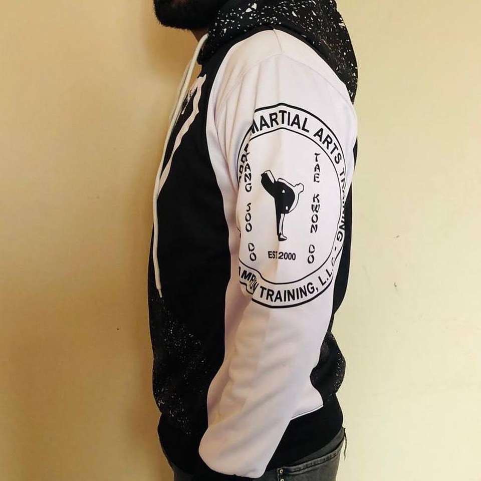 เสื้อมีฮู้ดแบบซับลิเมตเกรดพรีเมี่ยมสำหรับทุกเพศเสื้อคิกบ็อกซิ่งใส่ได้ตามต้องการโลโก้ที่กำหนดเองมีฮู้ดแบบสวมหัวมีฮู้ด450 GSM