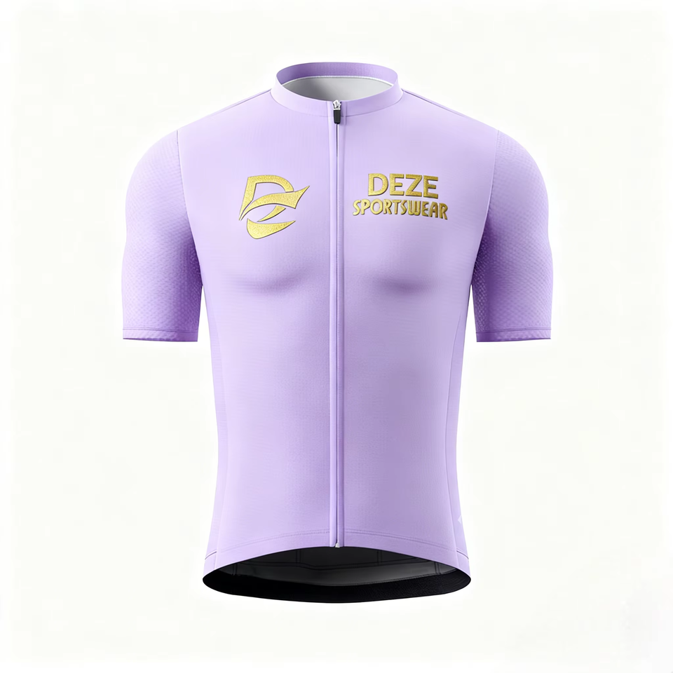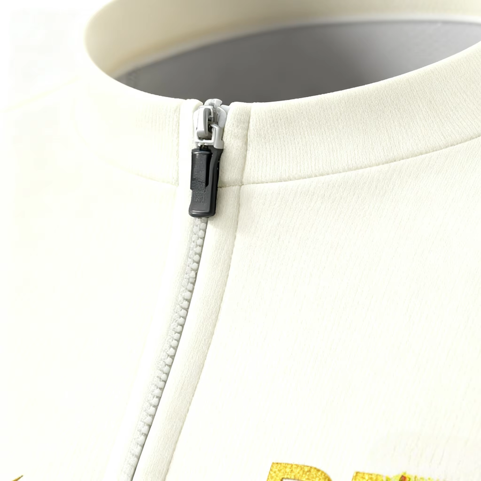 เสื้อจักรยานแขนสั้นแบบยูนิเซ็กซ์ รุ่นโปร ตกแต่งด้วยสีทองหรูหรา พร้อมแขนตาข่ายแบบมีลาย คอตั้ง สำหรับการปั่นจักรยานบนถนน การฝึกซ้อมของสโมสร