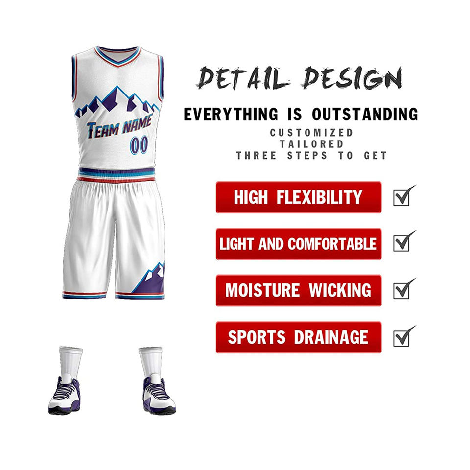 ชุดกีฬาบาสเก็ตบอลมืออาชีพสำหรับทุกเพศกางเกงขาสั้นสีขาวทนทานพิมพ์ซับลิเมชันตามสั่งระบายอากาศสำหรับเบสบอลซอฟต์บอล