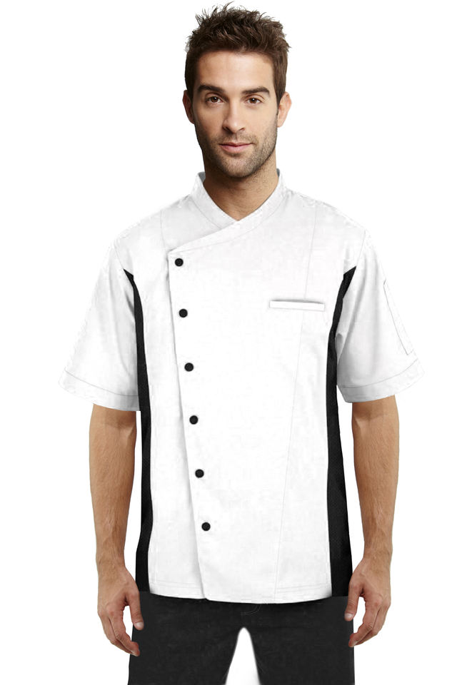 เสื้อเชฟแขนสั้นสำหรับทุกเพศ, เสื้อเชฟมืออาชีพพร้อมช่องระบายอากาศตาข่ายด้านข้างสำหรับบริการอาหารในร้านอาหารและบาร์