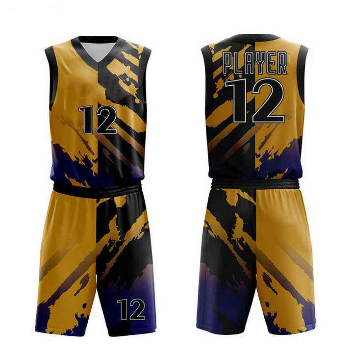 ชุดบาสเก็ตบอลแห้งเร็วใส่ได้ทั้งชายและหญิงชุดบาสเก็ตบอลระบายอากาศพิมพ์ลายซับลิเมชัน