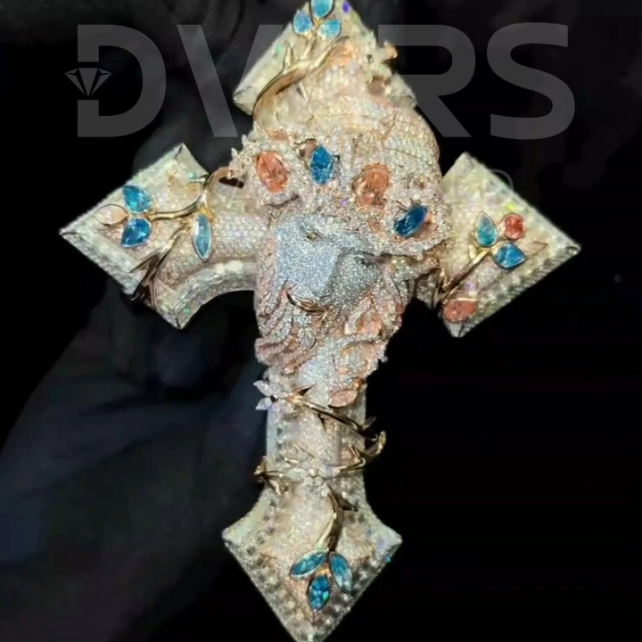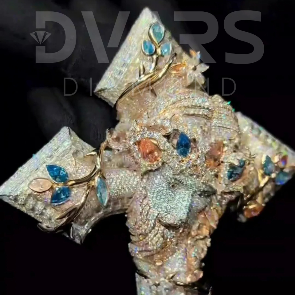 จี้รูปไม้กางเขนแบบ unisex สำหรับแร็ปเปอร์ ทำจากเงินแท้ 925 ประดับเพชร GRA Certified ทรง Brilliant Cut ชุบทองคำสีชมพู พร้อมสลักชื่อตามสั่ง