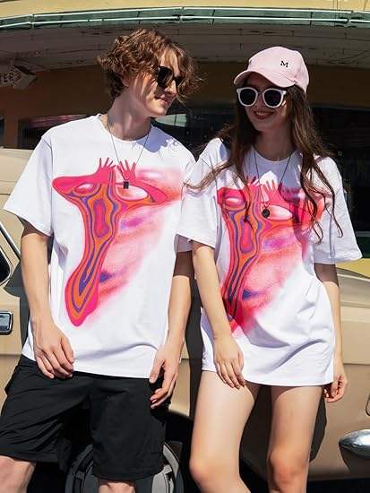 เสื้อยืดลำลองสไตล์วินเทจทรงปกติสำหรับทุกเพศ แขนสั้น พิมพ์ลายดิจิทัล เป็นมิตรต่อสิ่งแวดล้อม เหมาะสำหรับฤดูใบไม้ผลิ