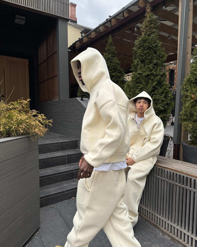 ชุดกีฬาแบบยูนิเซ็กซ์ทรงปกติสำหรับฤดูหนาว สีพื้นเรียบ ผ้าเทอร์รี่คอตตอน 400 GSM น้ำหนักเบา รับผลิตตามสีที่ต้องการ บริการ OEM