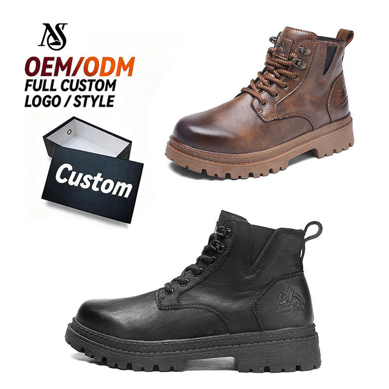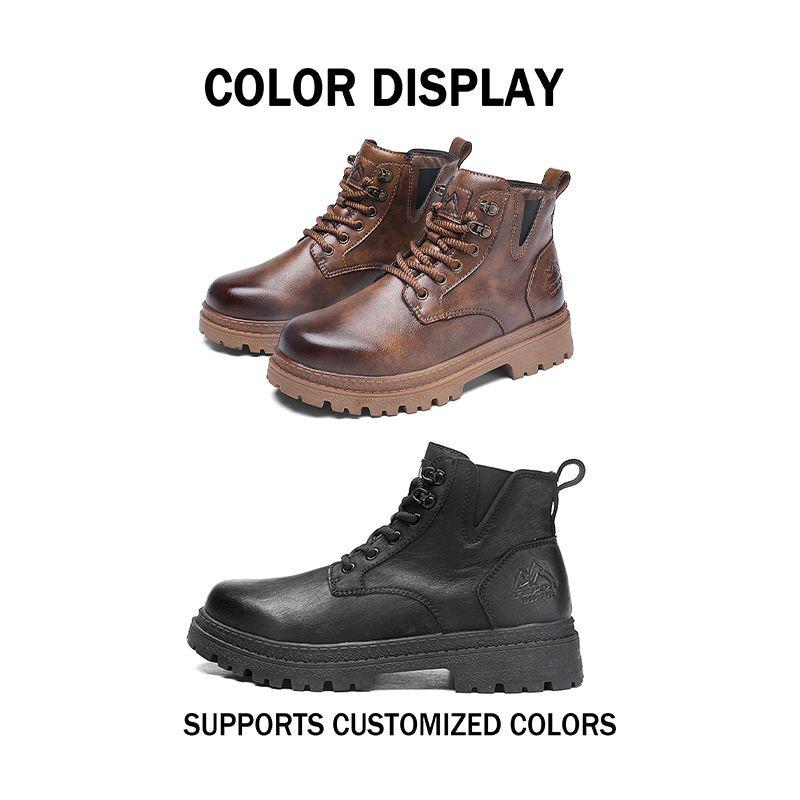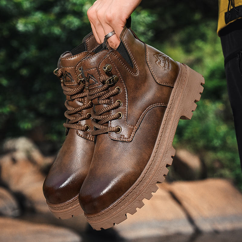 บูทหนังแท้สไตล์ย้อนยุคใส่ได้ทั้งชายและหญิงพื้นรองเท้า EVA แบบผูกเชือกสีน้ำตาลเข้มสำหรับฤดูหนาวฤดูใบไม้ร่วงและฤดูร้อน