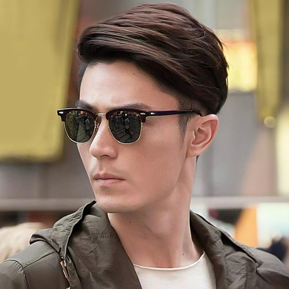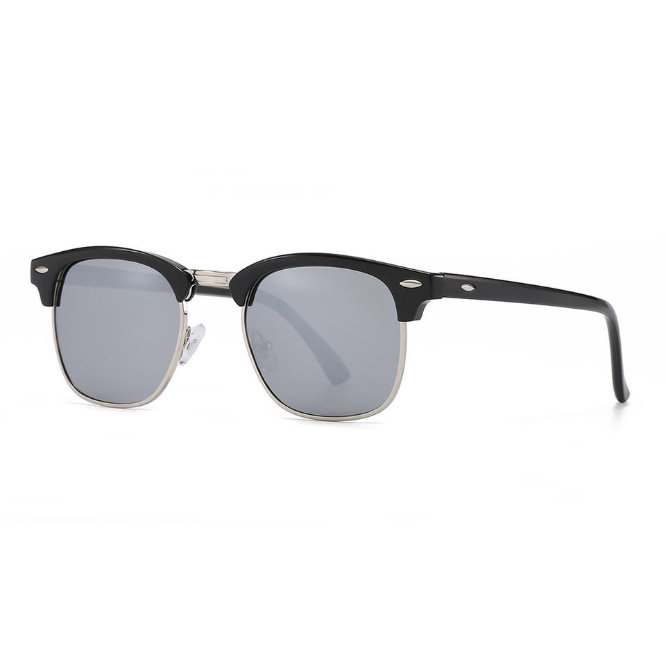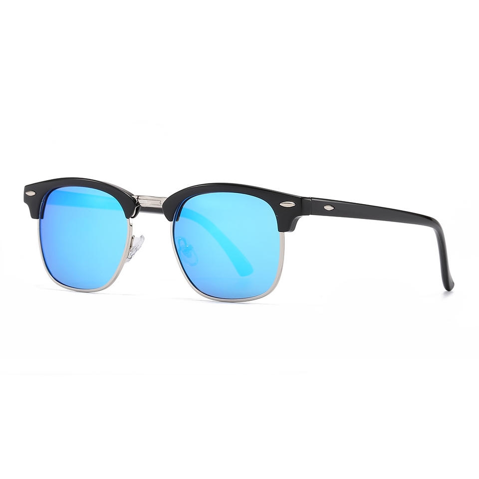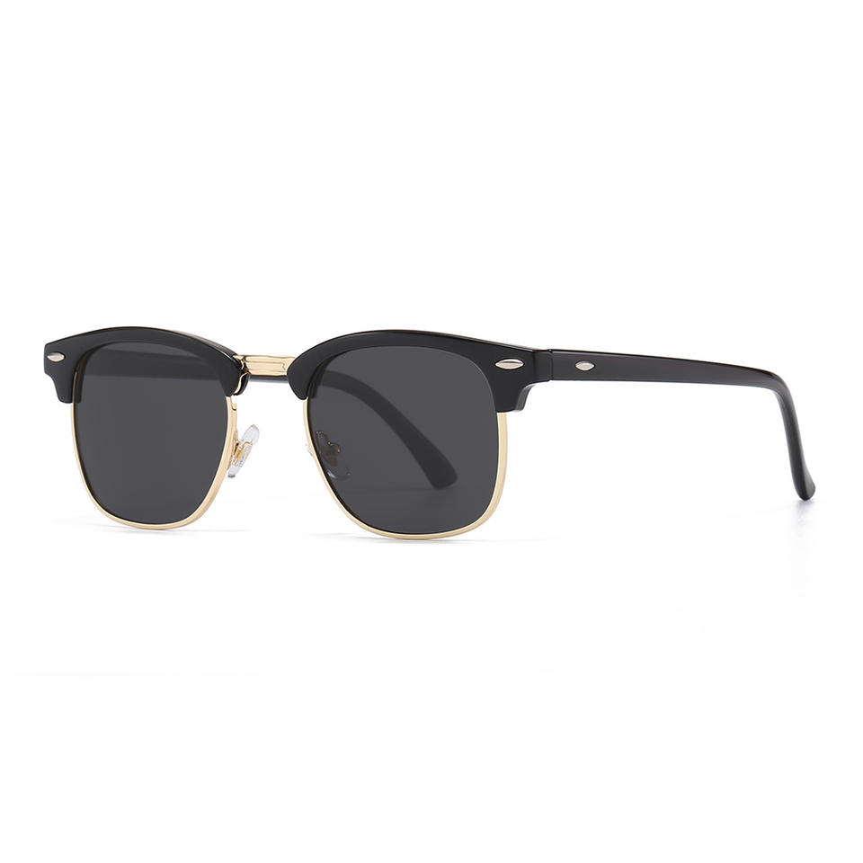 แว่นกันแดดย้อนยุคแบบยูนิเซ็กซ์ กรอบโลหะครึ่งวงกลมสีดำ เลนส์โพลาไรซ์ PC ป้องกันรังสียูวี 400 ป้องกันแสงสะท้อน แว่นตาขับรถ รุ่นที่ 3
