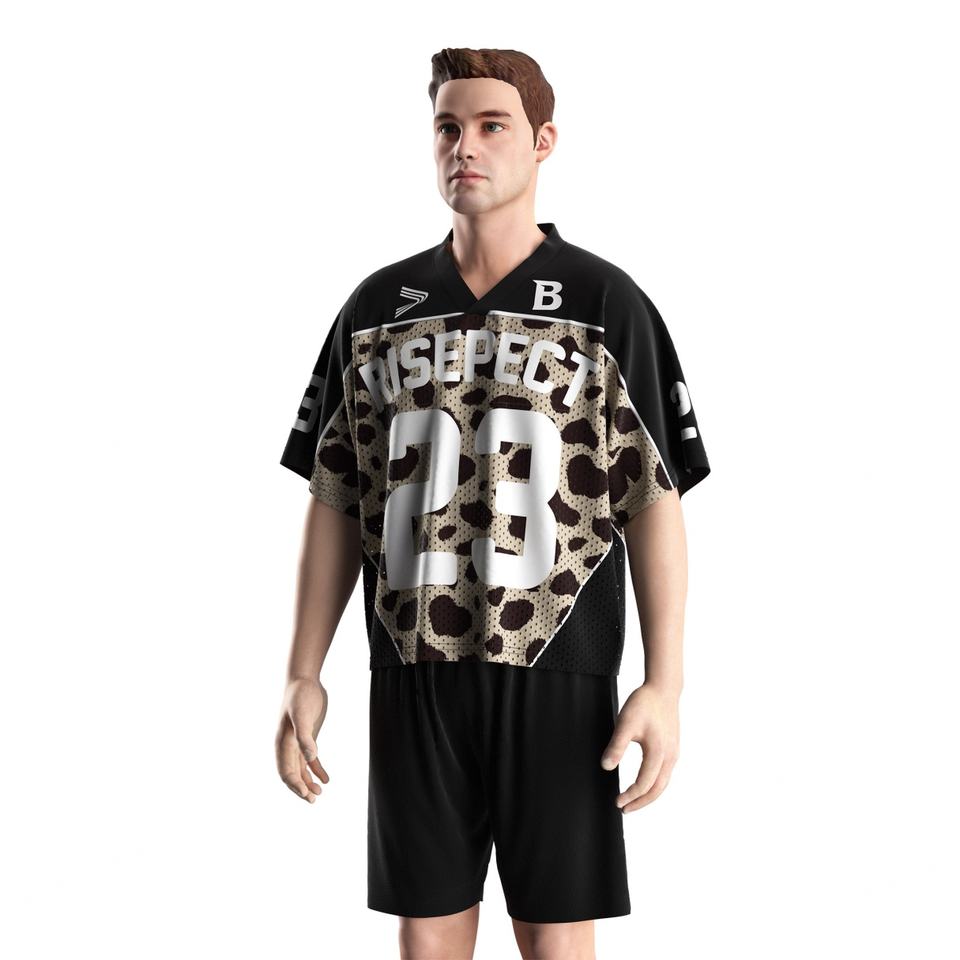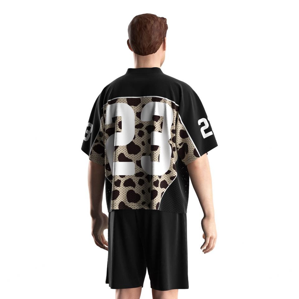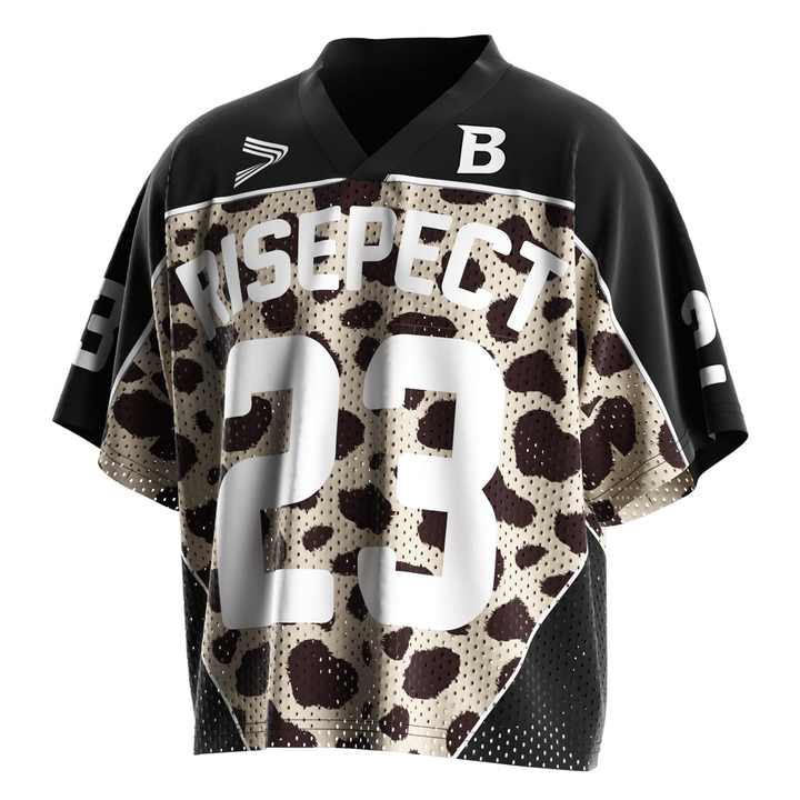 เสื้อฟุตบอลย้อนยุคสไตล์อเมริกันแบบยูนิเซ็กซ์ พร้อมแผ่นปะหมายเลขลายเสือดาวสุดคลาสสิก ผลิตจากผ้าตาข่ายแห้งเร็ว เหมาะสำหรับวันแข่งขัน