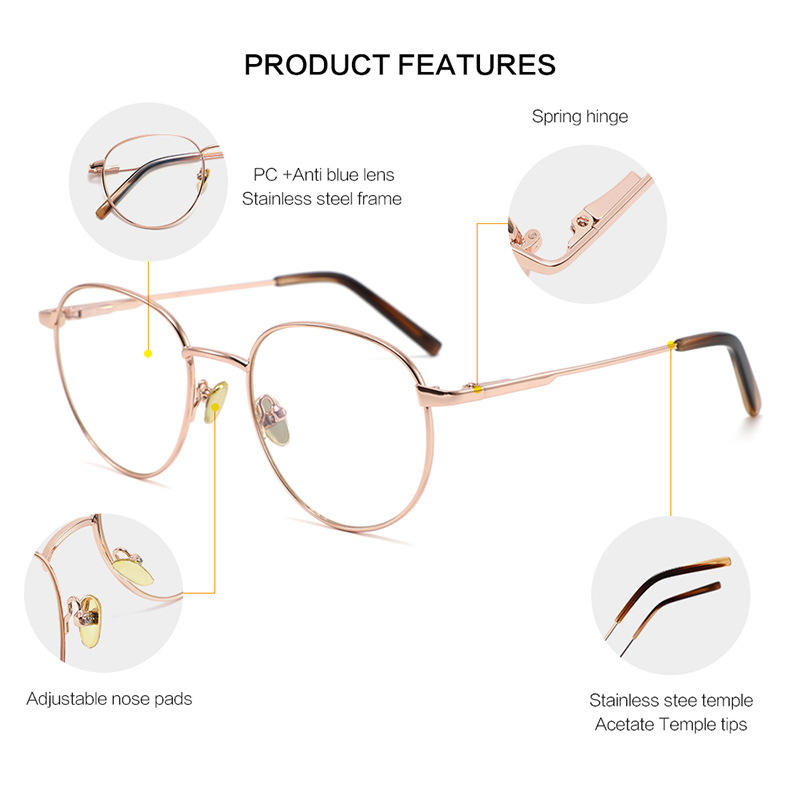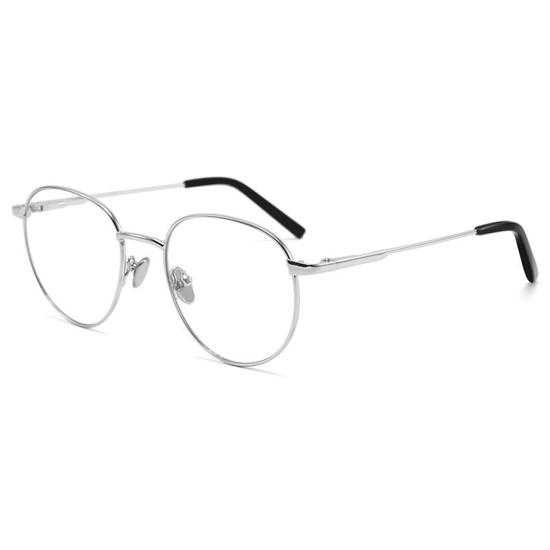 กรอบแว่นตาทรงกลมแบบ unisex กรอบเต็ม ป้องกันแสงสีฟ้า ขาแว่นอะซิเตท กรอบสแตนเลส สำหรับผู้ชายและผู้หญิง