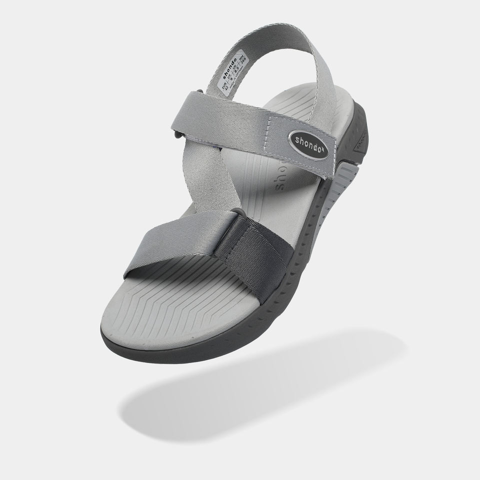 รองเท้าแตะแบบสวม unisex สีเทา สายไขว้ เปิดนิ้วเท้า สไตล์ลำลอง ติดตีนตุ๊กแก ใช้ได้ทุกฤดู วัสดุส่วนบนทำจากไนลอน