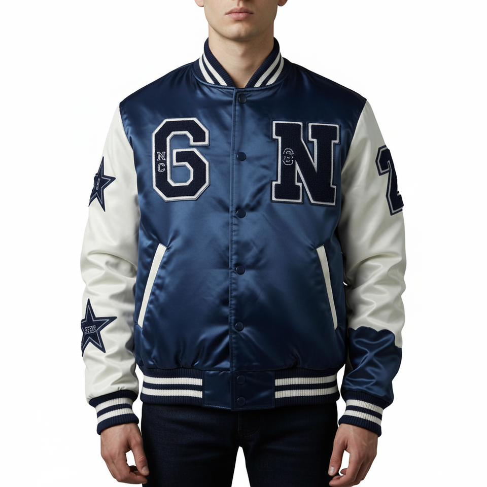 แจ็กเก็ตซาตินปรับแต่งได้สำหรับทุกเพศพร้อมโลโก้