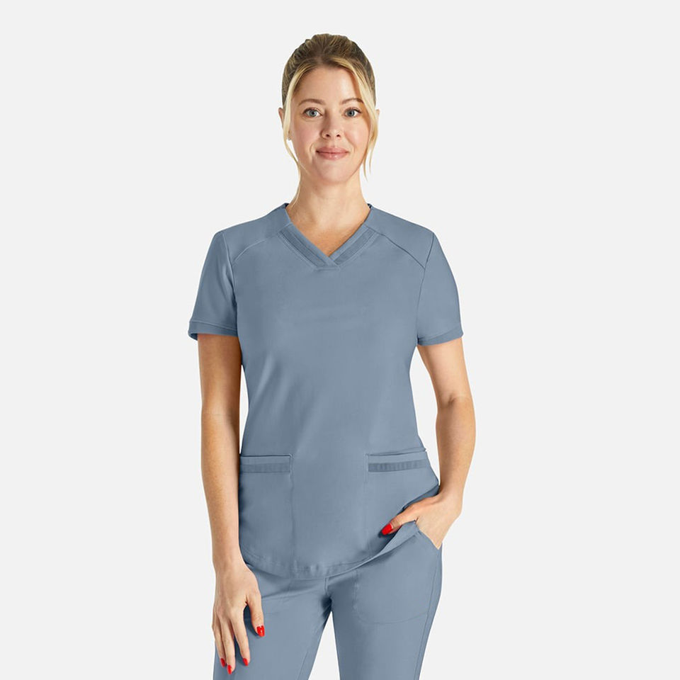 ชุดเครื่องแบบพยาบาลขัดผิวสำหรับทุกเพศชุดผ้าแคนวาสสำหรับโรงพยาบาลผ้าคอตตอนโพลีเอสเตอร์แขนสั้น