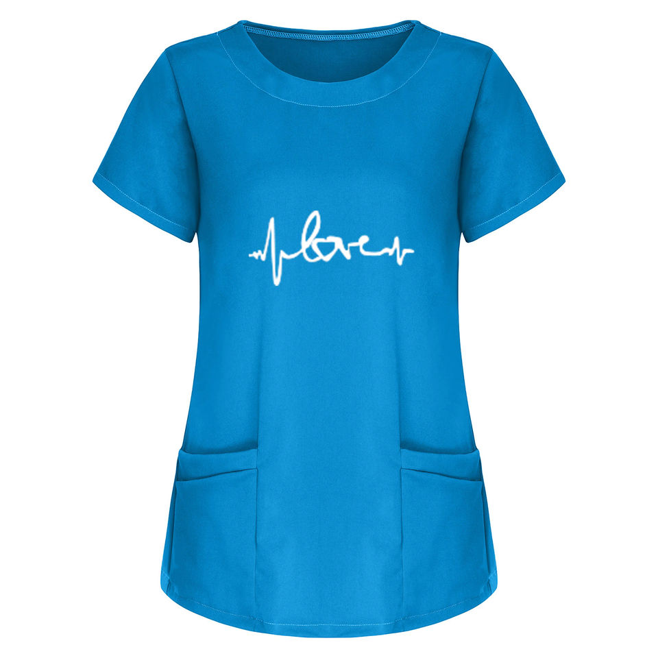 เสื้อยูนิเซ็กซ์แขนสั้น คอทอ ผ้าเนื้อแน่น ตรวจวัดได้ ใช้สำหรับพยาบาล ชุดยูนิฟอร์มโรงพยาบาล เสื้อยืดแบบสครับ ไร้ตะเข็บ