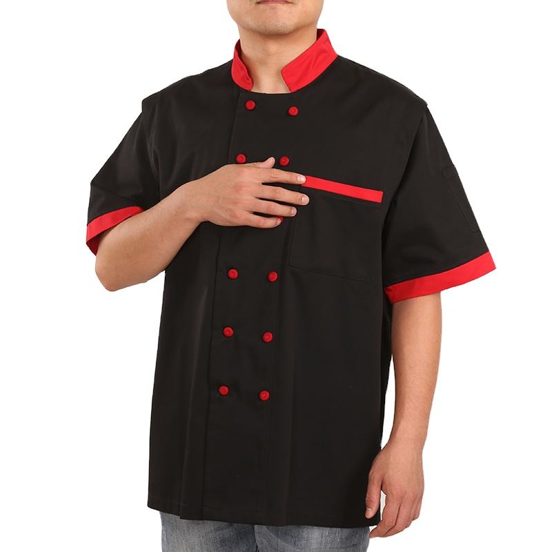 เสื้อแจ็กเก็ตเชฟแขนสั้นใส่ได้ทั้งชายและหญิงเสื้อยูนิฟอร์มเชฟสำหรับร้านอาหารบาร์