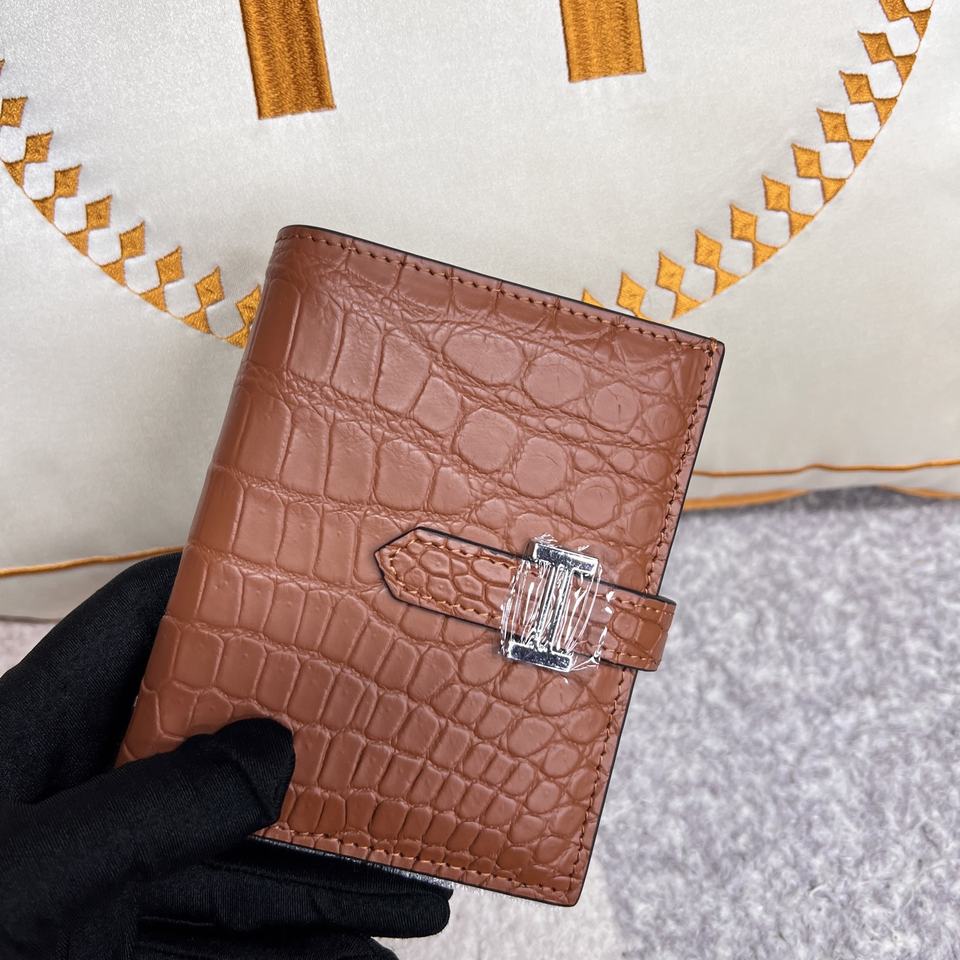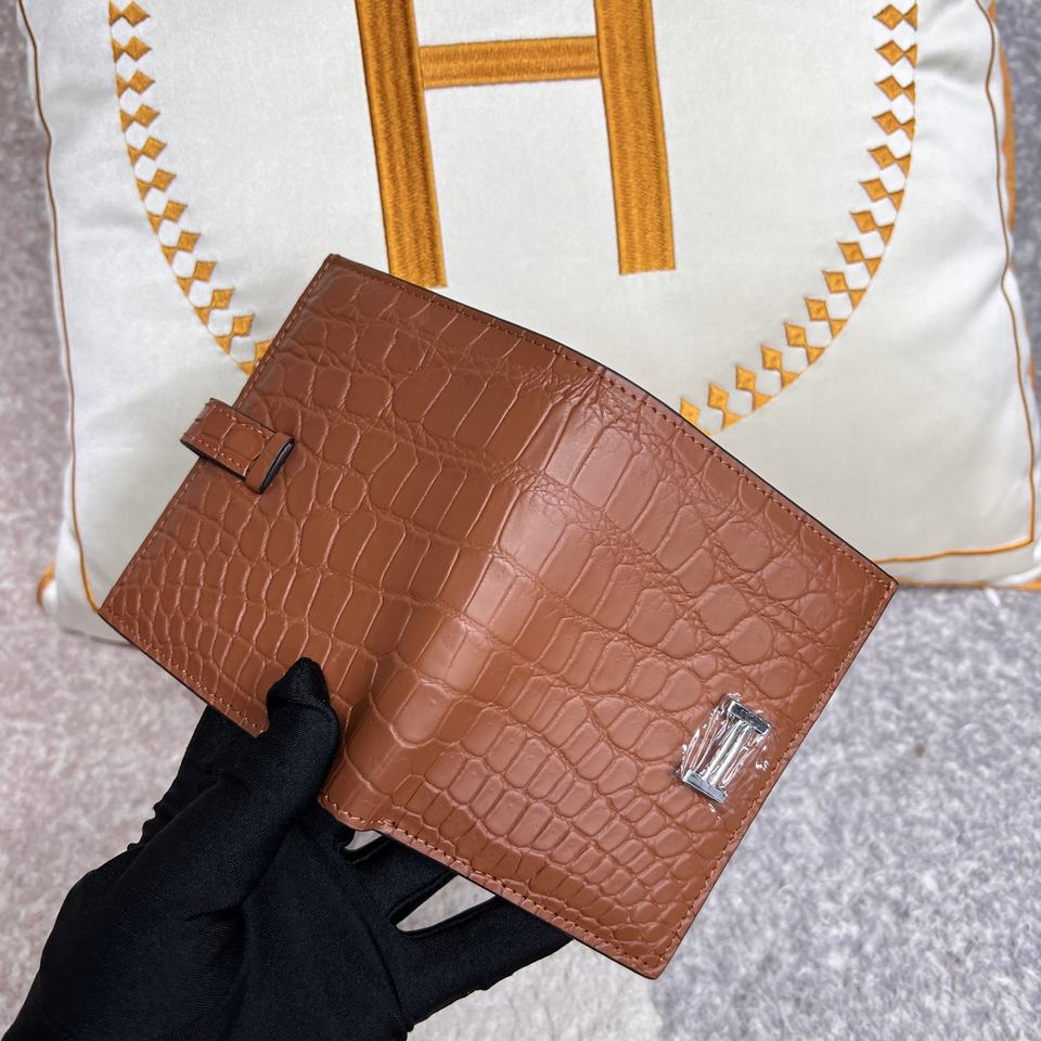 กระเป๋าสตางค์หนังจระเข้แท้แบบสั้นสำหรับทุกเพศ พร้อมช่องใส่บัตรเครดิตและเหรียญ ดีไซน์พับได้ พกพาสะดวก สไตล์เรโทร