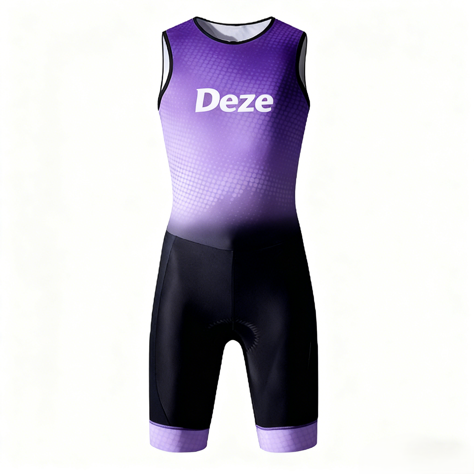 ชุดแข่งไตรกีฬาแบบแห้งเร็วสำหรับฤดูร้อน แขนกุด ยูนิเซ็กซ์ พิมพ์โลโก้ได้ตามต้องการ สำหรับปั่นจักรยาน วิ่ง ว่ายน้ำ
