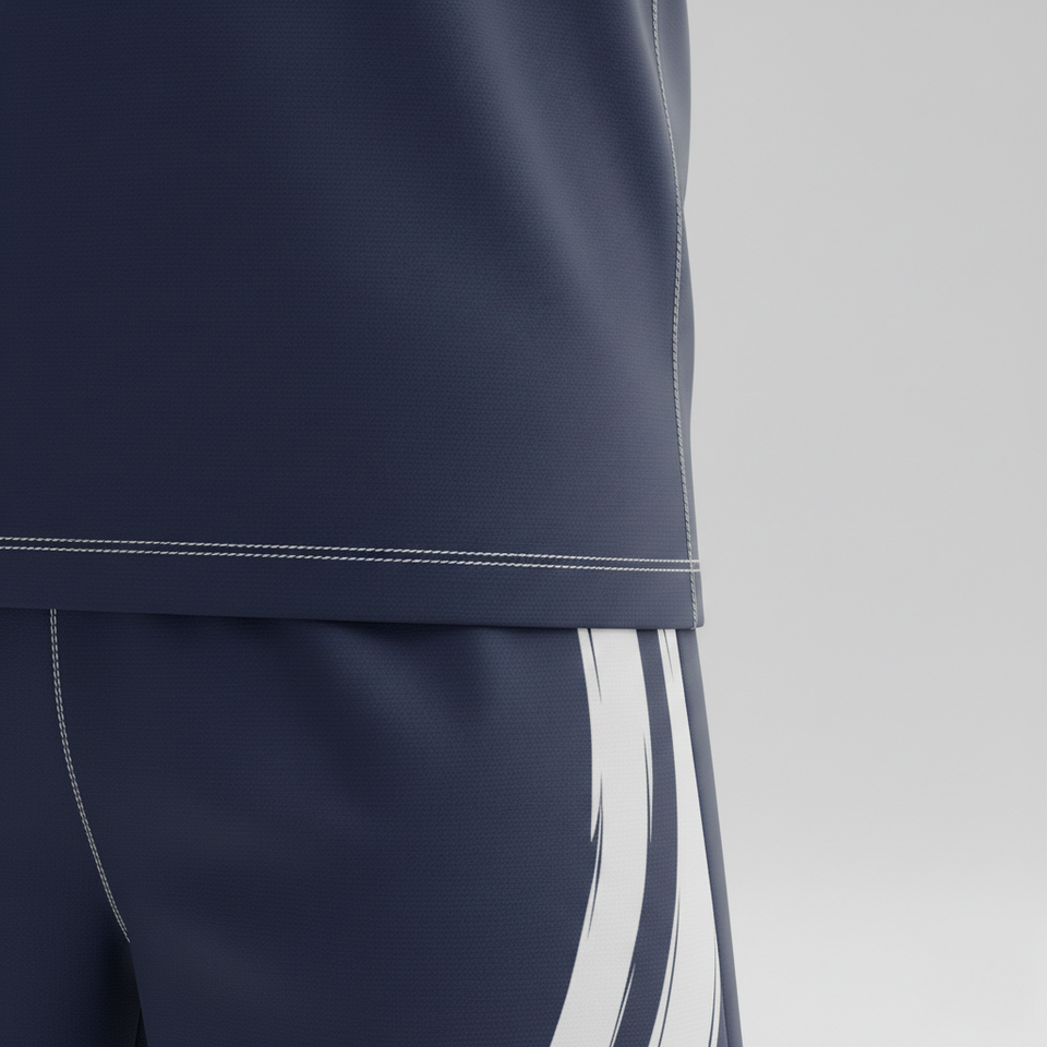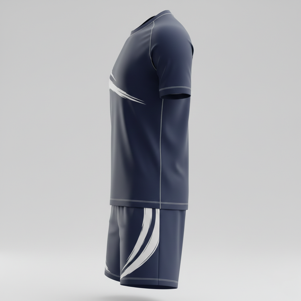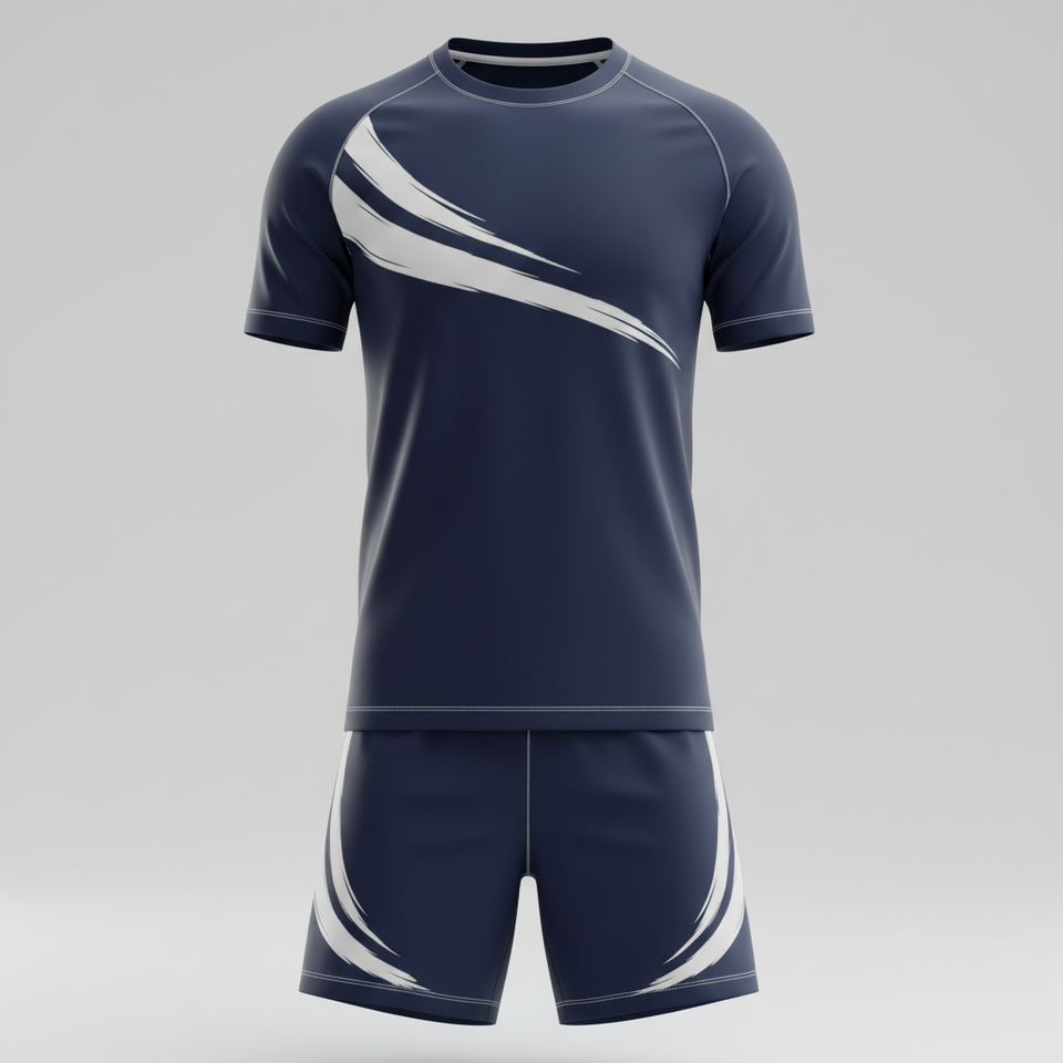 ชุดฟุตบอลยูนิเซ็กซ์พร้อมกางเกงขาสั้น ชุดสองชิ้น Eco Fusion ชุดกีฬาฝึกซ้อมฟุตบอลแบบยั่งยืน รับผลิตตามแบบ OEM