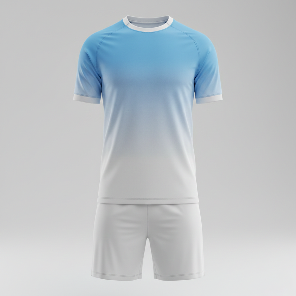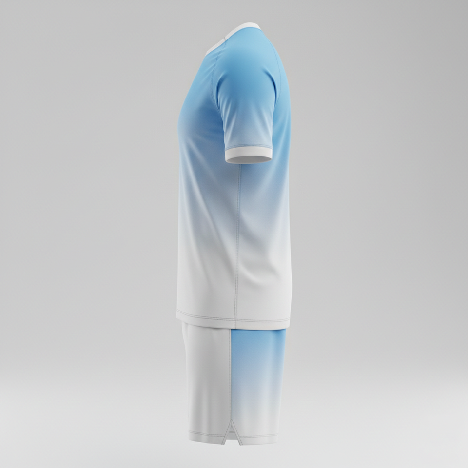 ชุดฟุตบอลยูนิเซ็กซ์พร้อมกางเกงขาสั้น ชุดสองชิ้นแบบพรีเมียมรักษ์โลก ชุดกีฬาฝึกซ้อมฟุตบอลแบบยั่งยืน รับผลิตตามแบบ OEM