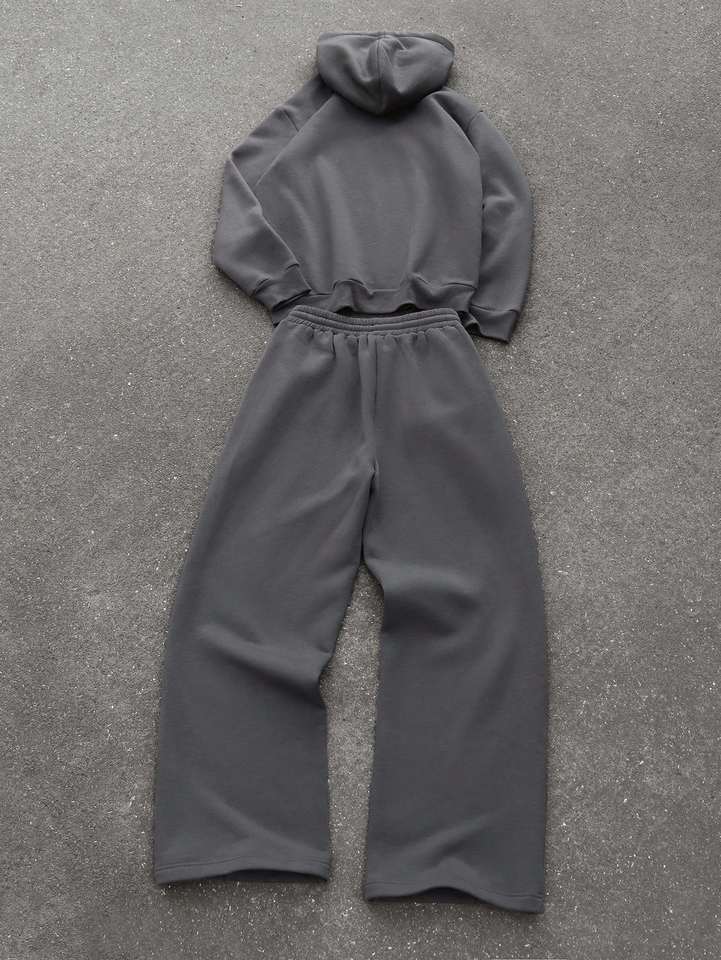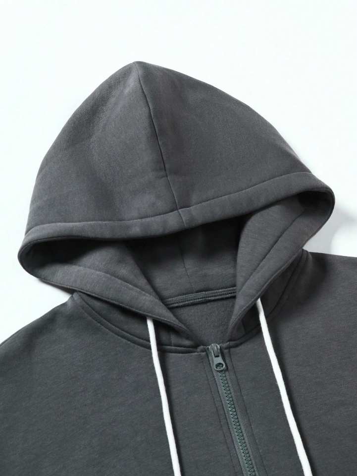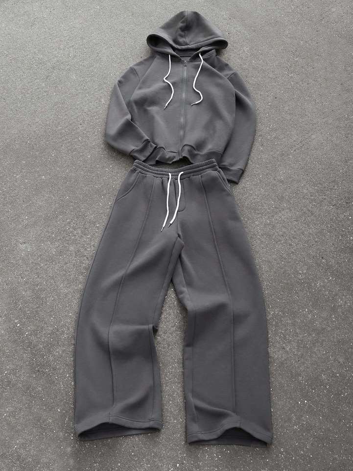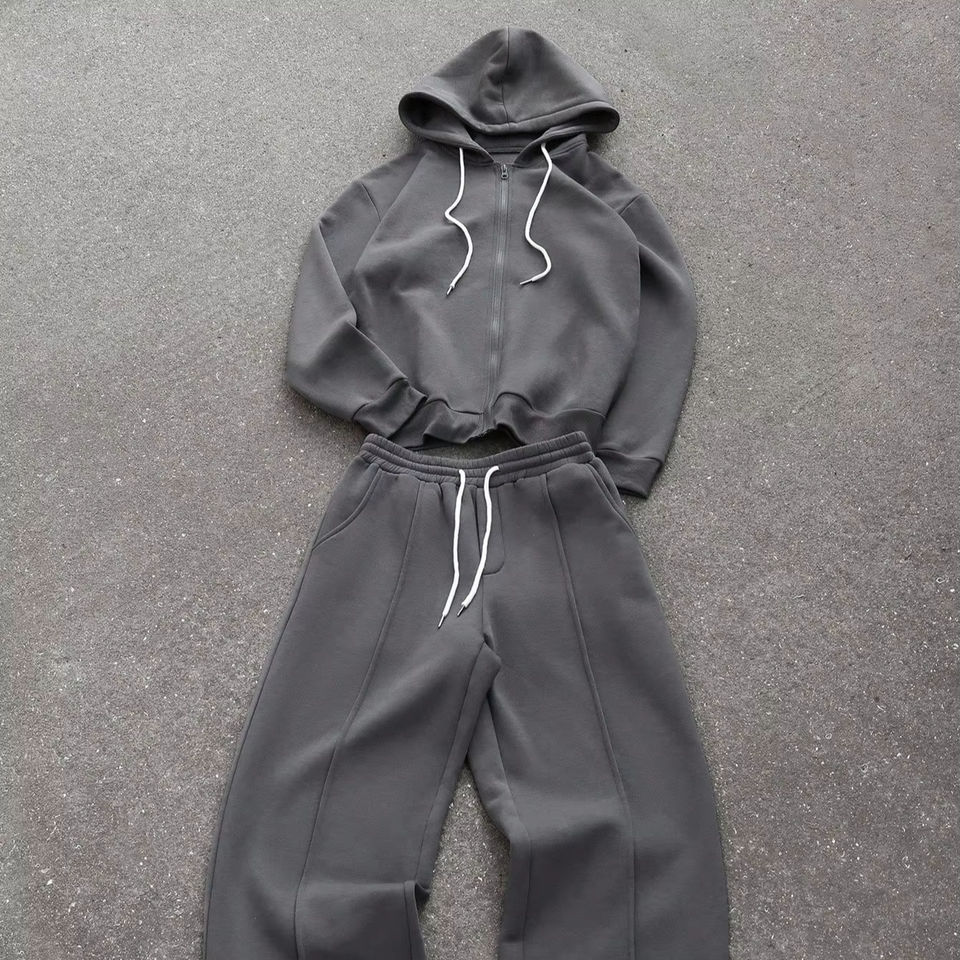 เสื้อฮู้ดมีซิปหน้าสีพื้นแบบยูนิเซ็กซ์ แขนยาว มีเชือกผูกเอว กางเกงวอร์มสตรีทแวร์ทรงหลวมโอเวอร์ไซส์สำหรับฤดูหนาว