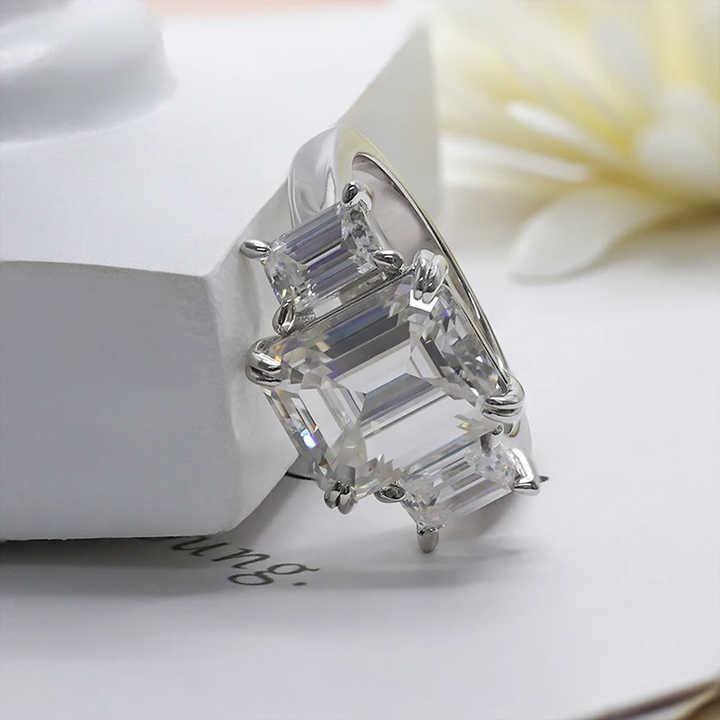 แหวนหินสามก้อนชุบทองสเตอริงสำหรับชายและหญิงประดับด้วยเพชรโมอิสสำหรับงานแต่งงานงานหมั้นของขวัญติดฉลากแบรนด์ตามต้องการ