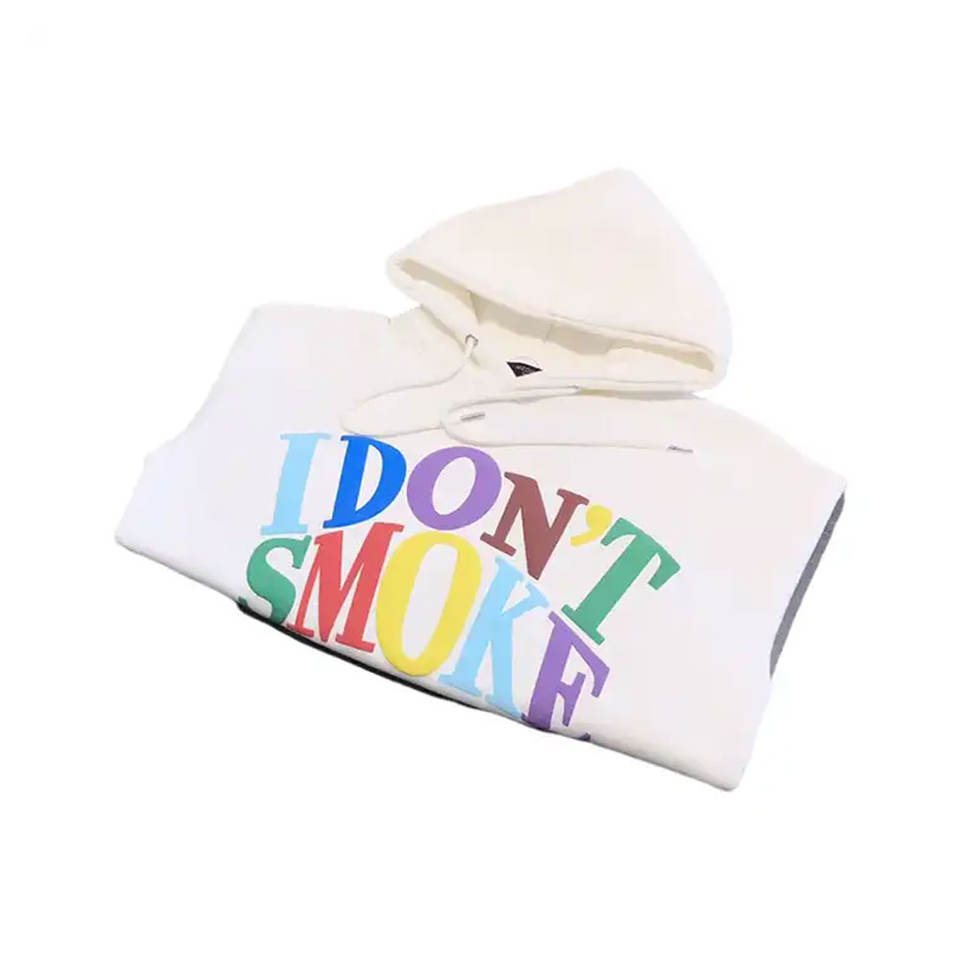 เสื้อสเวตเตอร์ผ้าฝ้ายพิมพ์ลายพัฟฟ์สำหรับทุกเพศแนวสตรีทเทอร์รี่ผลิตจากเทอร์รี่มีฮู้ดเฮฟวี่เวทโอเวอร์ไซส์