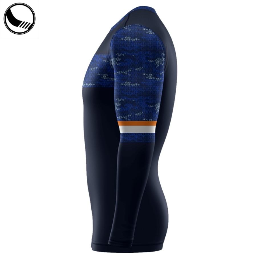 เสื้อแรชการ์ดแขนสั้นระบายอากาศได้ดี UPF50 แบบซับลิเมชั่นสำหรับทุกเพศ