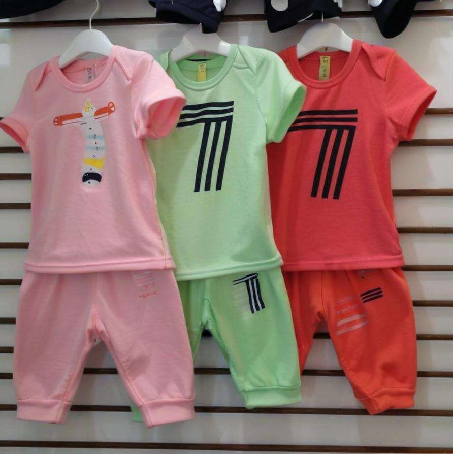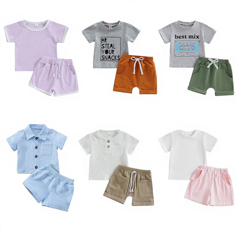 ชุดเสื้อยืดและกางเกงขาสั้นผ้าฝ้ายสำหรับเด็กแบบยูนิเซ็กซ์ ฤดูร้อน ชุด 2 ชิ้น พร้อมระยะเวลาจัดส่งตัวอย่าง 7 วัน คละแบบ