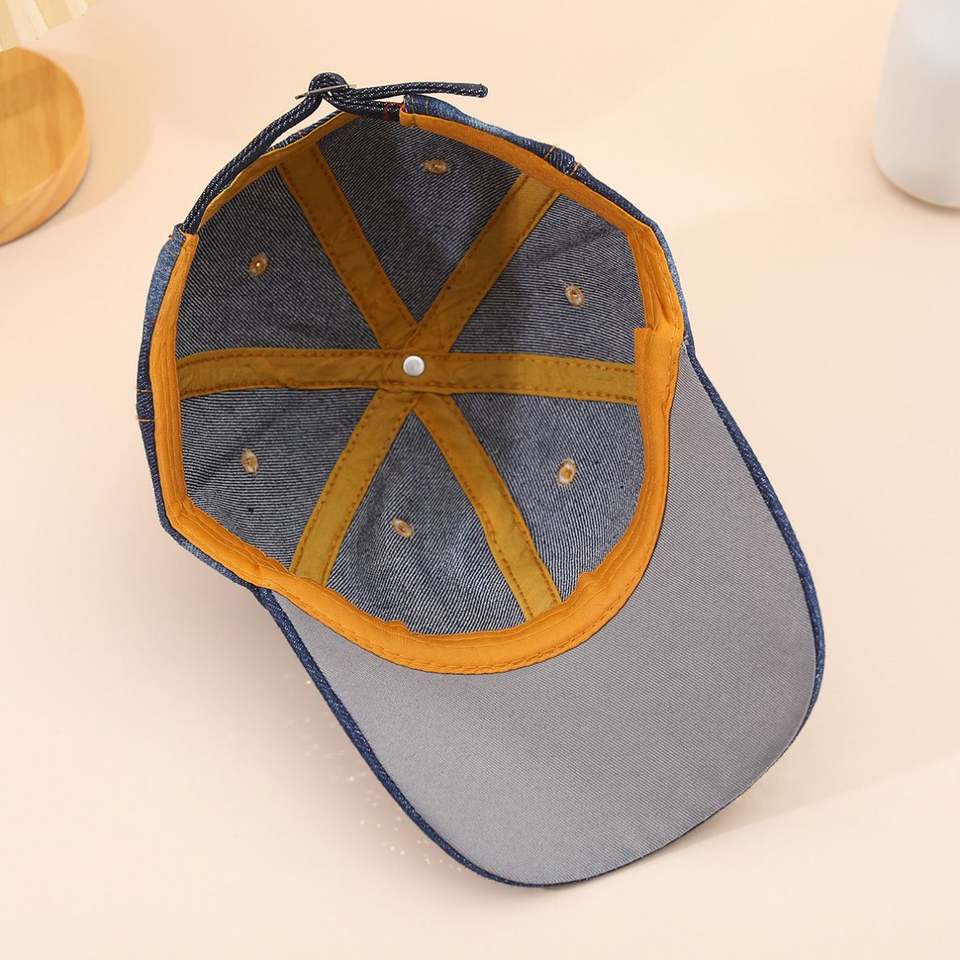 หมวกเบสบอลผ้ายีนส์ลายดาวประดับพลอยเทียมมุก