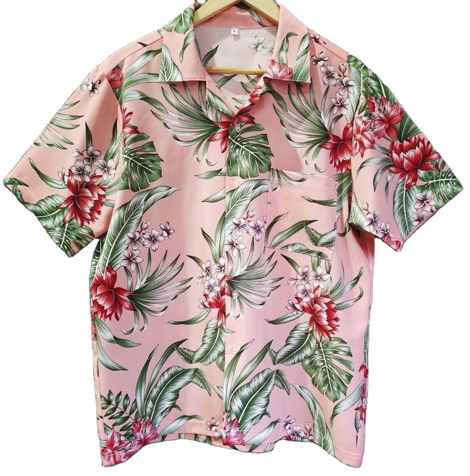 Unisex Summer Floral Pink Shirt New Arrival Short Sleeve Clothing Softest Italian Silk Wholesale Thailand Factory Best Price