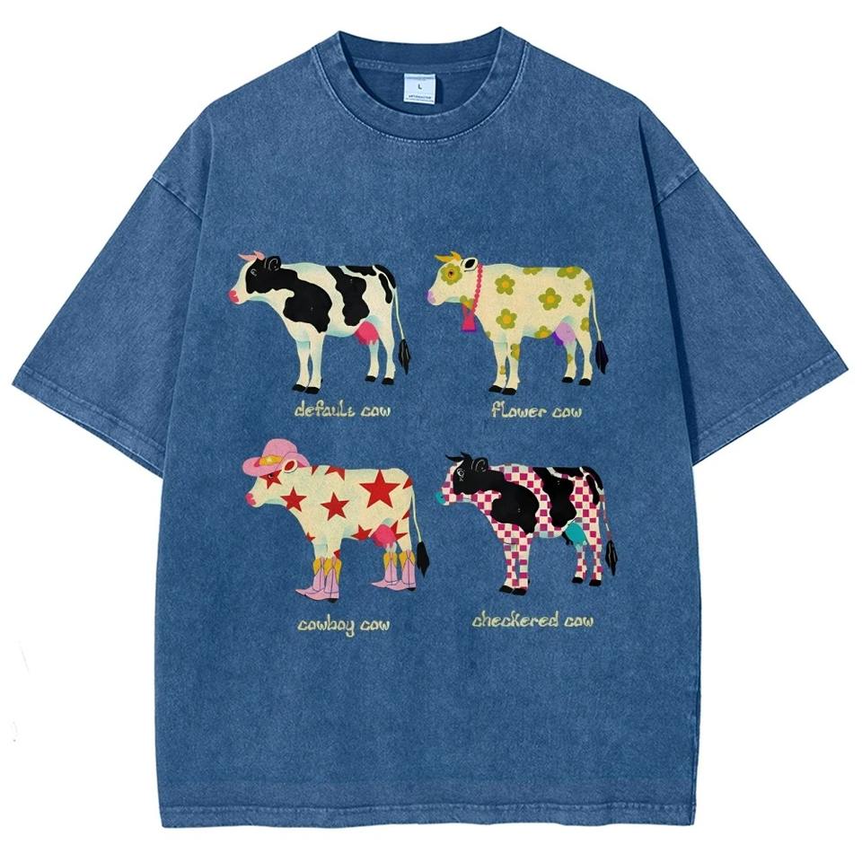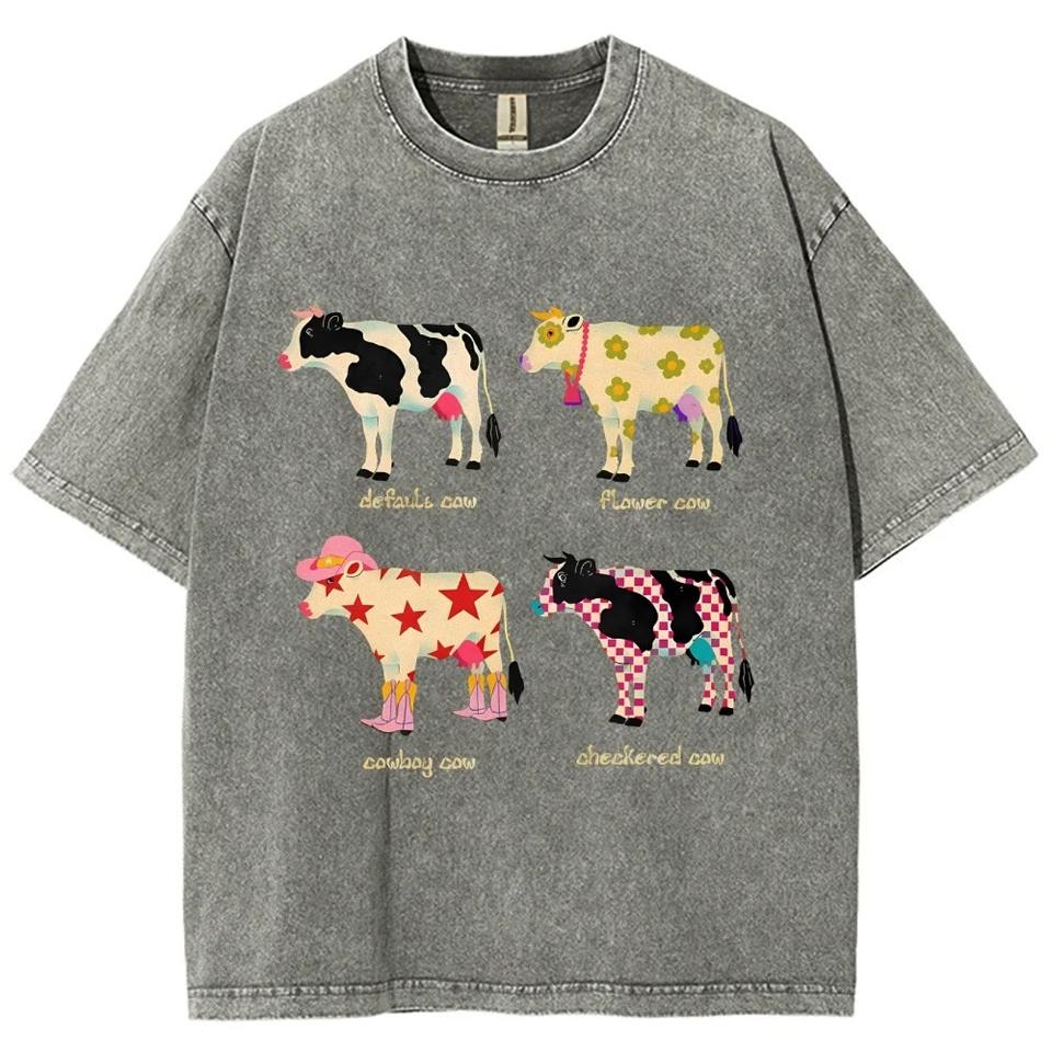 เสื้อยืดลายวัวและคาวบอยสไตล์วินเทจสำหรับฤดูร้อน ยูนิเซ็กส์ ล้างสีแบบแอซิด วัสดุผ้าฝ้าย สไตล์ลำลอง Y2K ยุค 90s เสื้อยืดเรโทรสำหรับผู้หญิงและผู้ชาย