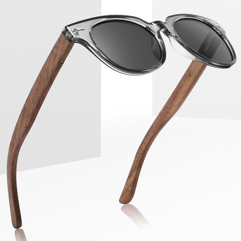 แว่นกันแดดแบบยูนิเซ็กซ์กรอบสีดำขาแว่นไม้ UV400 เลนส์โพลาไรซ์ TAC ป้องกันแสงแดดสำหรับกิจกรรมกลางแจ้งการเดินทางขับรถ