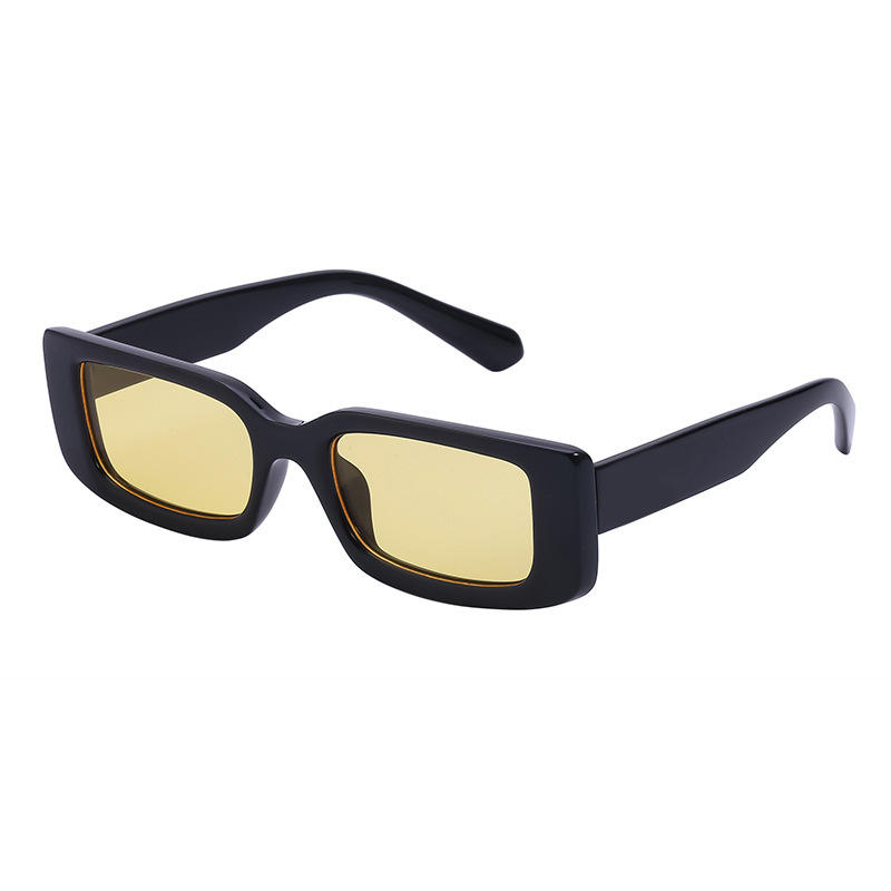 แว่นกันแดดแบบยูนิเซ็กซ์กรอบสีดำเลนส์สีเหลืองป้องกันรังสียูวี 400 แว่นกันแดดสำหรับเดินทางทันสมัยระดับการส่งผ่านแสงคลาส 2