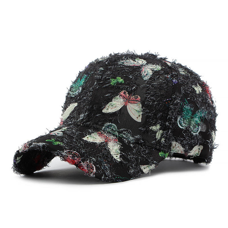 หมวกเบสบอลแบบปรับได้สำหรับทุกเพศหมวกติดด้านหลังแบบมีผีเสื้อแนวสตรีท