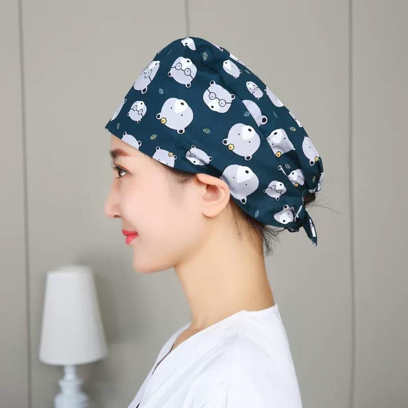 หมวกผ่าตัดใช้ได้ทั้งชายและหญิงดีไซน์พิมพ์ลายดิจิตอลสำหรับใช้งานทั่วไปใช้เป็นเคมีบำบัดผ้าโพกศีรษะในครัวทันตกรรมแพทย์พยาบาลทำงานหมวกสี่ฤดู
