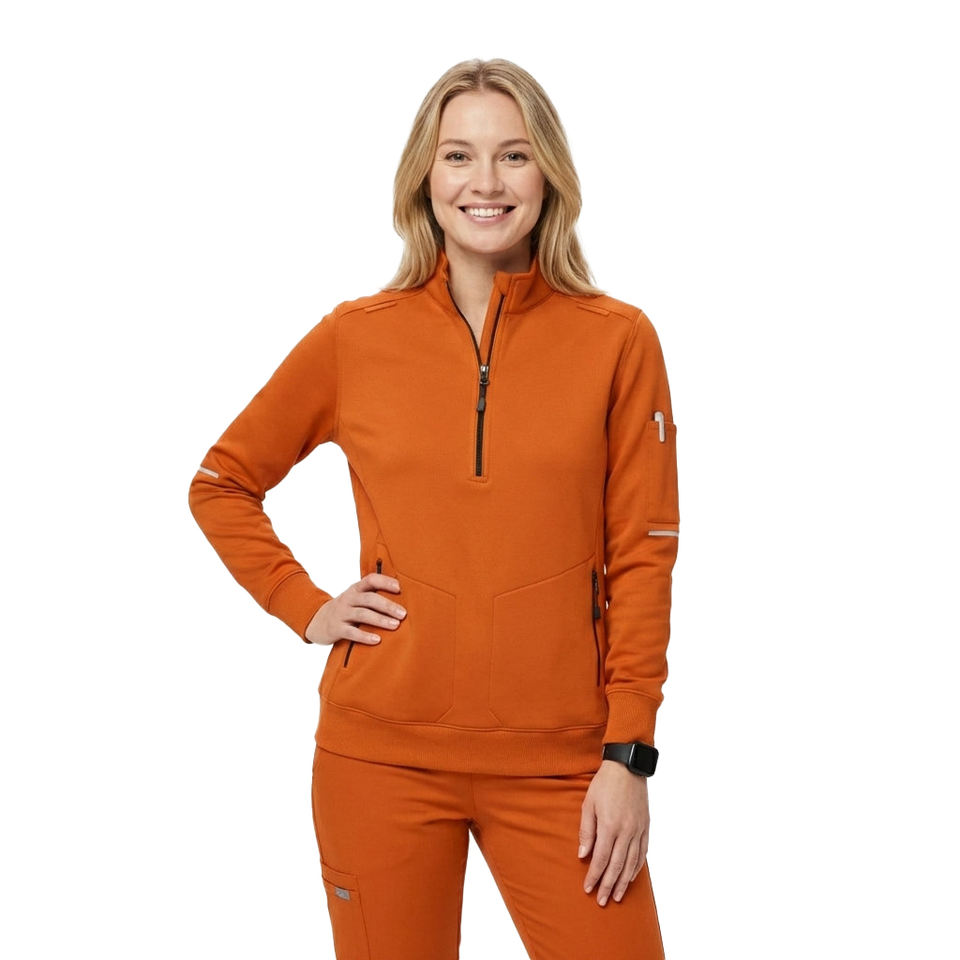 เสื้อแจ็คเก็ตสครับแบบยูนิเซ็กซ์ สไตล์ทหาร ซิป ¼ แบบสวมหัว ชุดยูนิฟอร์มโรงพยาบาล เสื้อคลุมอุ่นร่างกาย มีกระเป๋าซิป ขายส่งเสื้อสครับ