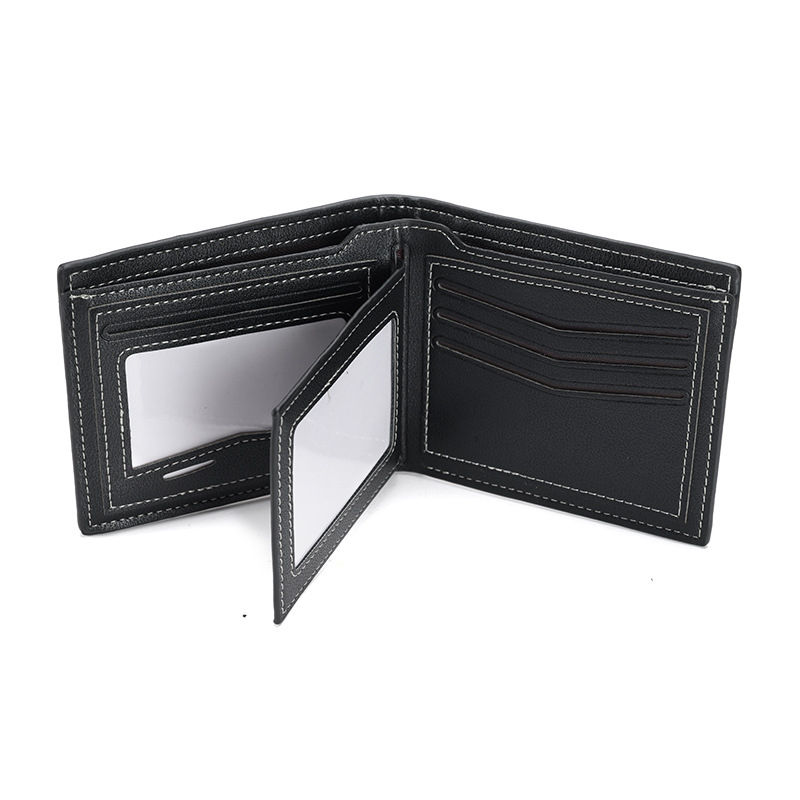 กระเป๋าสตางค์หนาใช้ได้ทุกเพศกระเป๋าใส่เหรียญอเนกประสงค์หนังแท้ป้องกัน RFID โพลีเอสเตอร์ซับในขนาดสั้นความจุมาก