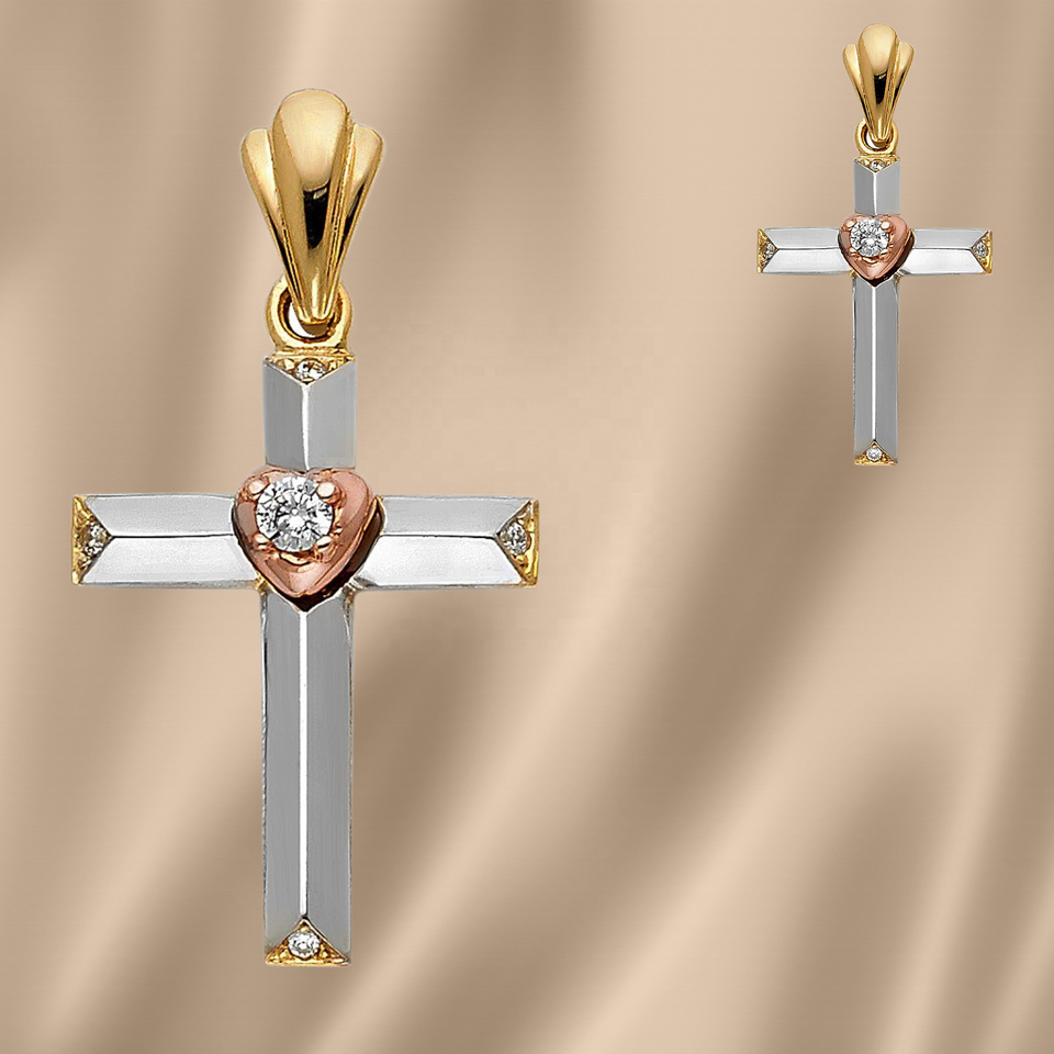 สำหรับทุกเพศจี้ไม้กางเขนชุบสามโทนส่วนใหญ่ทำจากทองเหลืองทองแดงประดับเพชรเครื่องประดับแฟชั่นสำหรับคริสเตียนผู้ชายผู้หญิงผู้หญิง