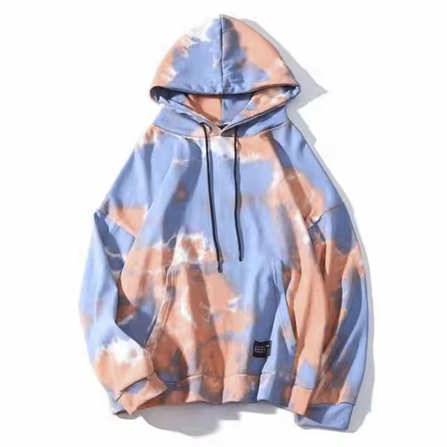 เสื้อฮู้ดแบบสวมหัวย้อมสีมัดย้อมสำหรับทุกเพศเสื้อมีฮู้ดผ้าฟลีซระบายอากาศได้ดีผ้า100% สำหรับฤดูหนาวกำหนดขนาดได้