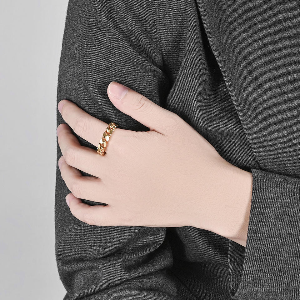 แหวนโซ่ไทเทเนียมสตีลแบบยูนิเซ็กซ์ สีทอง ดำ เงิน สไตล์ฮิปฮอป แฟชั่น กำไลข้อมือ แหวนนิ้วโป้ง เครื่องประดับ