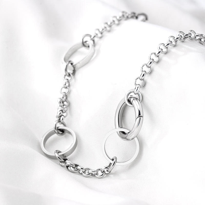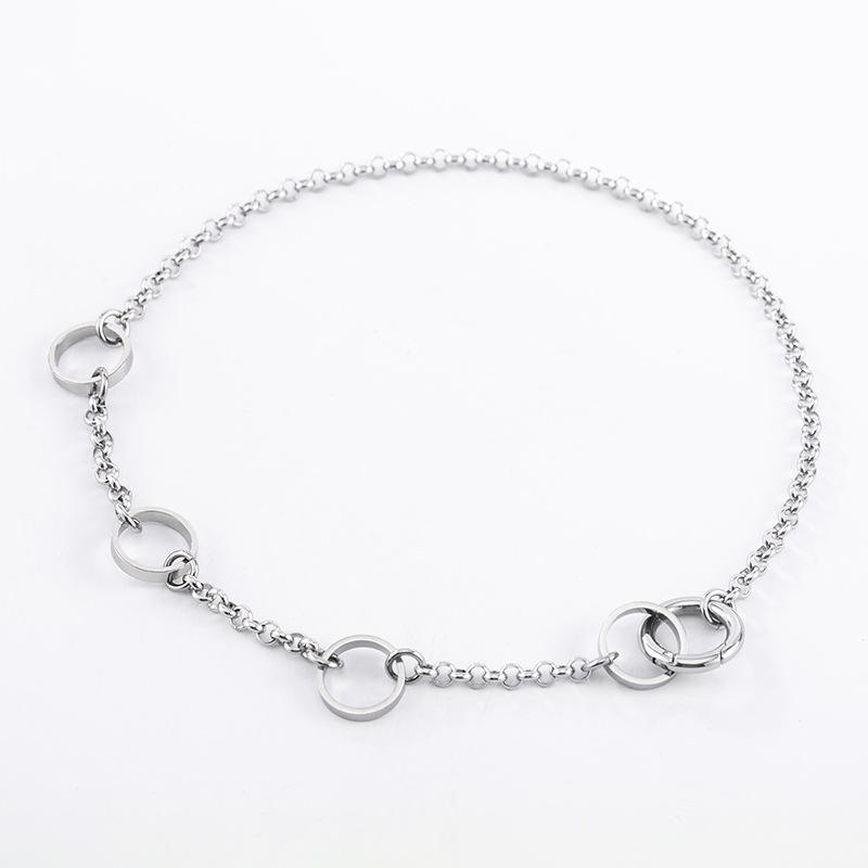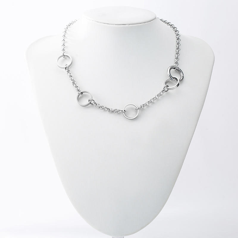 Unisex Titanium Steel O-Chain Spliced Round Ring Clavicle Necklace Geometric Minimalist Fashion Everyday Wear